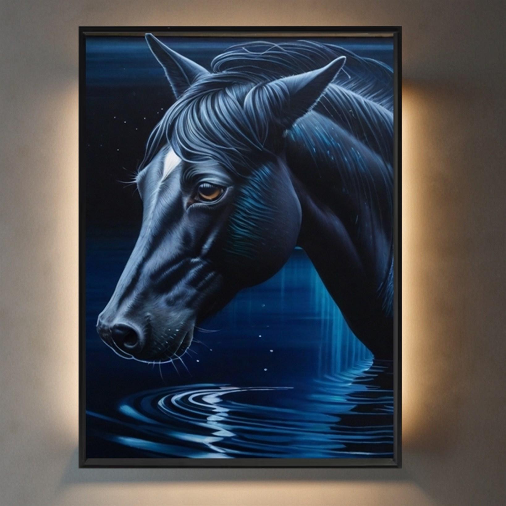 Whether you choose Gallery wrap for its seamless appearance or opt for the classic elegance of a canvas frame or prefer the modern appeal of a floating frame, "Celestial Rider" will infuse your space with an air of enchantment and wonder. This art piece serves as both an exquisite focal point for any room and an homage to nature's profound mysteries.