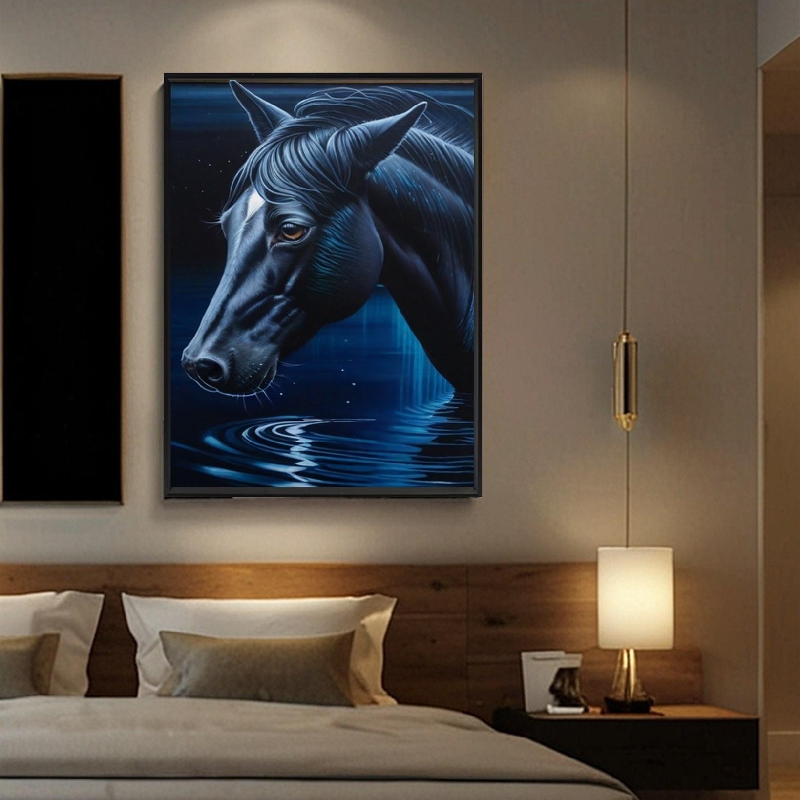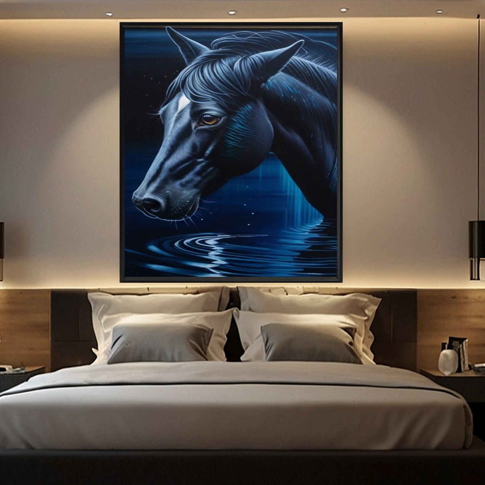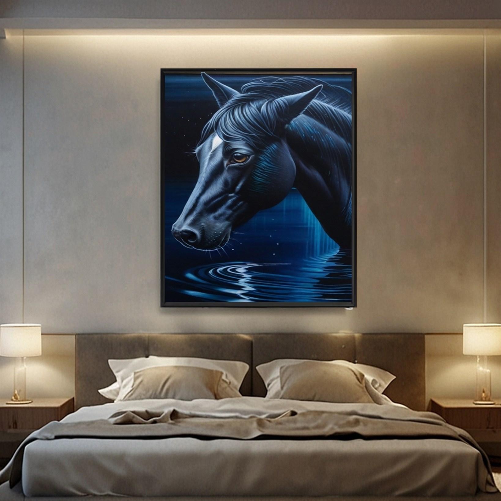 Celestial Rider" by canvassupermart is a captivating canvas print featuring a wild horse under a starry night sky, available for online purchase with three frame options - Gallery wrap, canvas frame, and floating frame. This stunning artwork captures the mystical connection between the horse and the cosmos, adding an enchanting touch to any space.