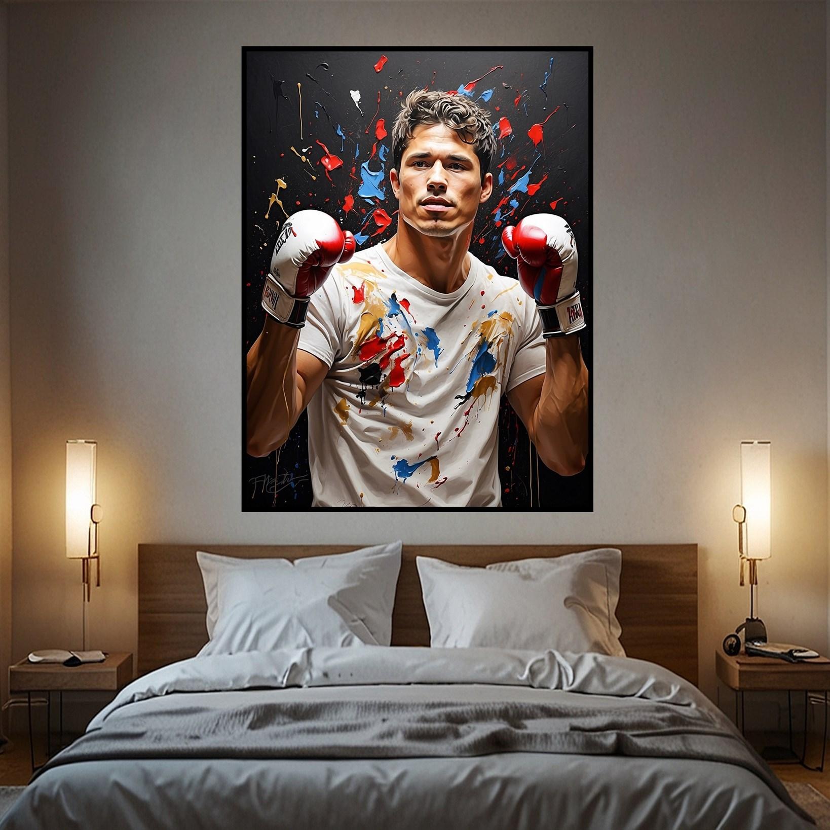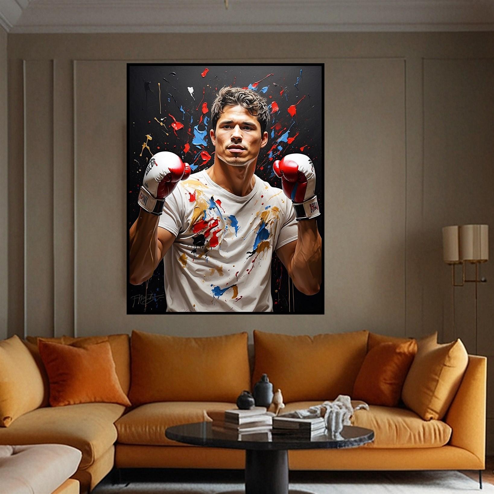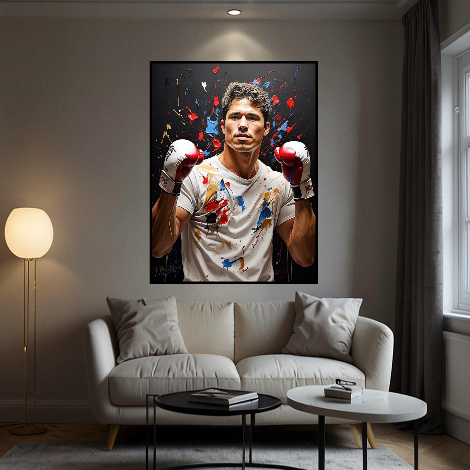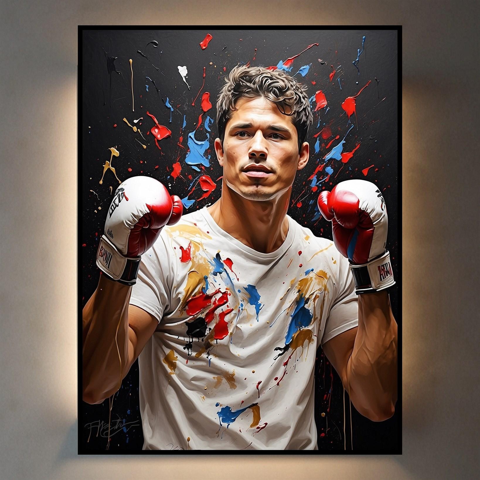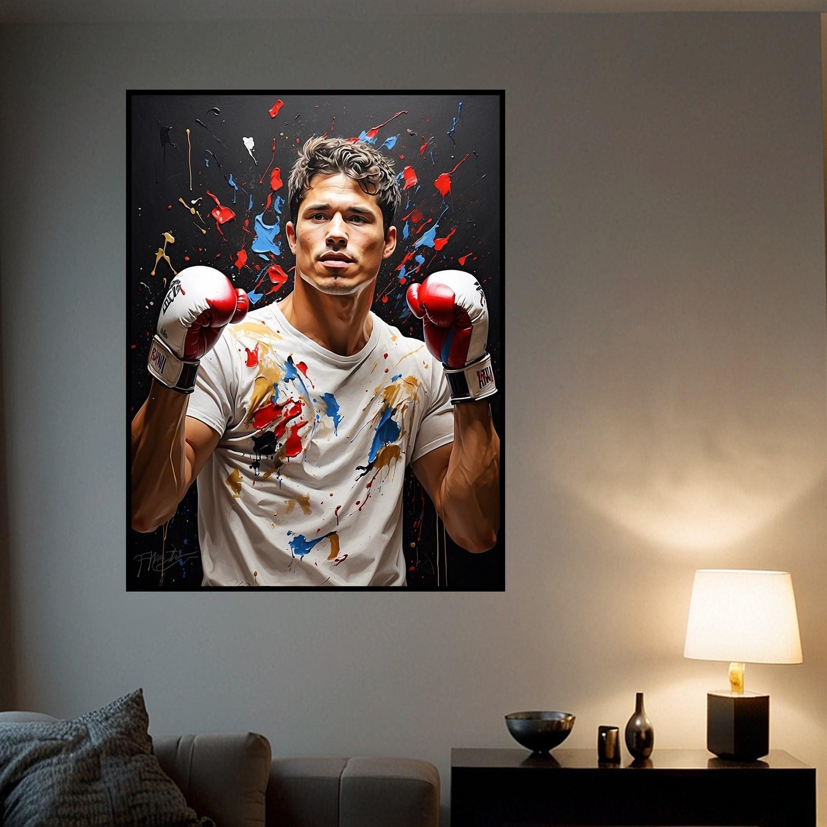 Bring the vibrant energy of combat sports into your space with "Fighters Palette." This dynamic piece is available in three frame options: Gallery wrap, canvas frame, and floating frame. Perfect for sports enthusiasts looking to add a punch of color and action to their décor. Order online now!