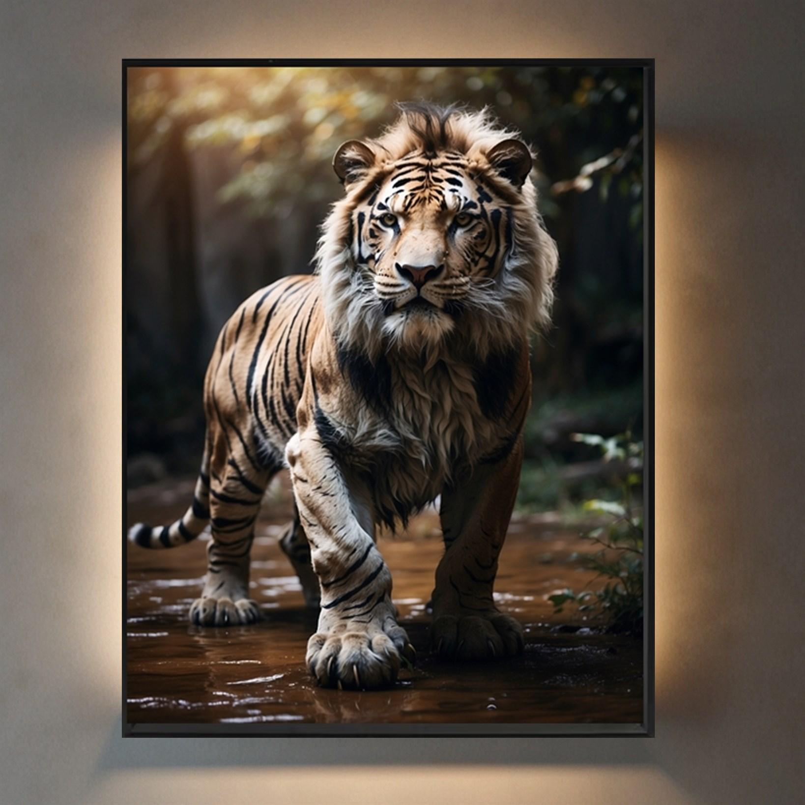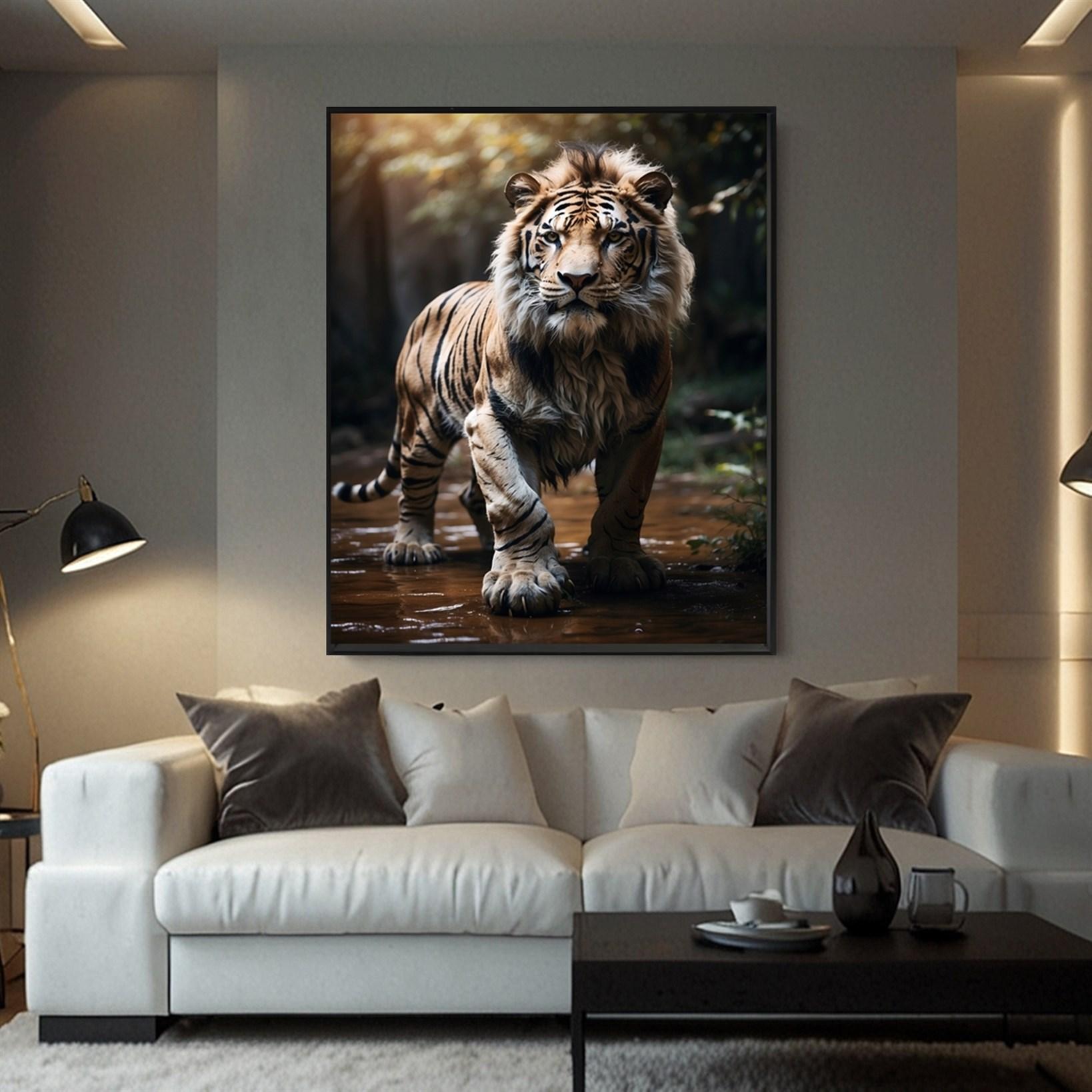 With its mesmerizing portrayal of wild lions in their natural environment, "Sunset Roar" serves as both an impressive decorative piece and a tribute to these iconic animals. It brings the untamed spirit found in Africa's wilderness into any space, infusing it with an air of regal splendor while inviting admiration for one of nature's most powerful creatures. With "Sunset Roar," you can bring the captivating allure of lions into your home or office environment, creating an ambiance steeped in majestic beauty and natural wonder.