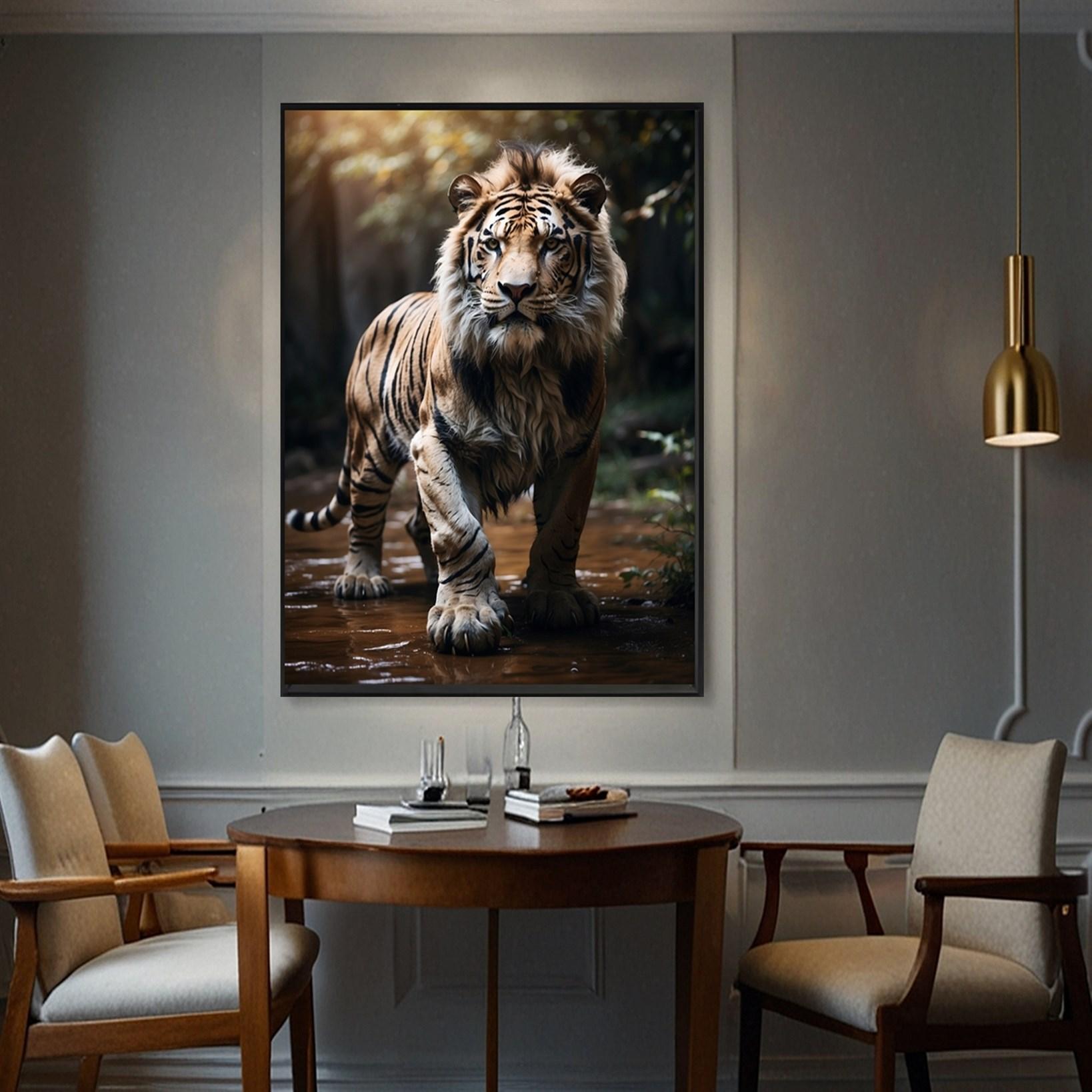 Customize "Sunset Roar" to match your personal style by choosing from three framing options: gallery wrap for a modern and seamless appearance; canvas frame for an elegant presentation that adds depth; or floating frame for a sophisticated touch that enhances visual impact.